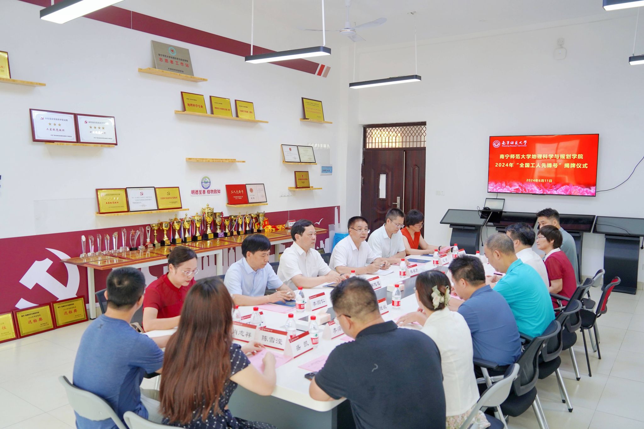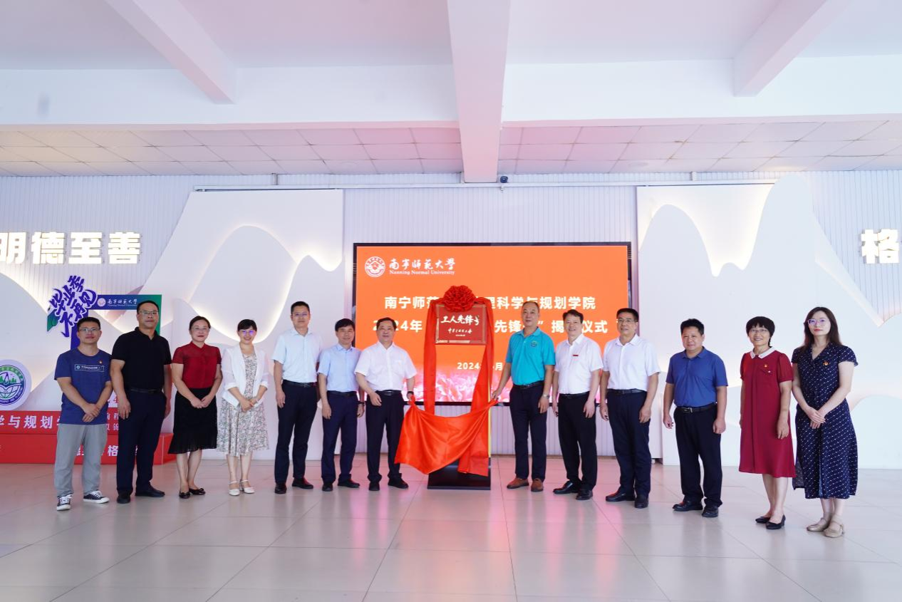 6月11日,学校在武鸣校区地源楼为6686体育荣获的2024年“全国工人先锋号”举行揭牌仪式。学校党委副书记、工会主席侯代忠,校工会、组织部、宣传部等部门负责人,6686体育领导班子成员及教师代表,地理与海洋研究院和环境与生命科学学院代表参加活动。