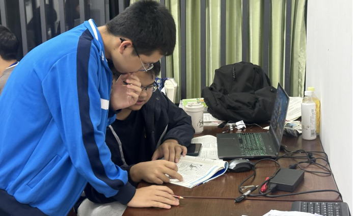 (图/实习老师梁昌伟为学生解答问题)