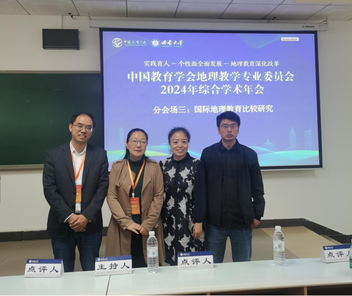 在10月29日上午举行的学术论文交流活动上,我校罗姗、徐梦龙、黄报玲、熊文栋、张莹等同学分别在“地理课程标准与教材研究”“现代地理信息技术的应用研究”“中学地理教学评价与考试命题研究”等分会场分享了他们的研究成果。我校张胜前教授负责“国际地理教育比较教育”专题报告的点评。