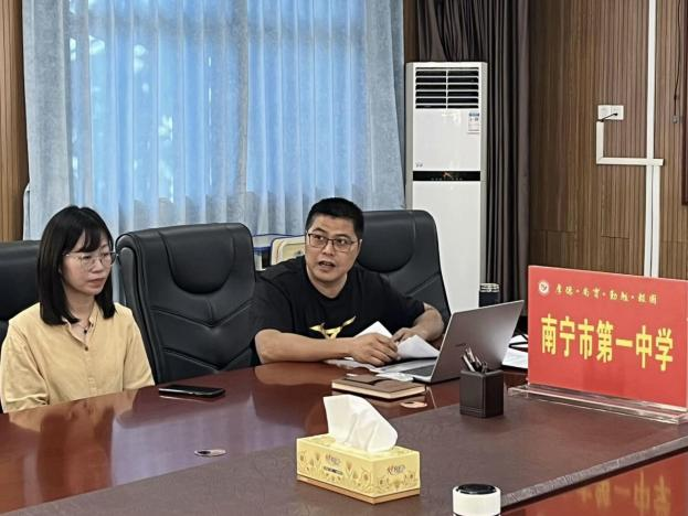 翌日下午15时,2024年秋季学期实习生见面会在南宁市第一中学高中部五象校区二号楼二楼会议室开展,会议由教务处主任陈兆坚主持。会议伊始,陈兆坚主任对本次教育实习的实习教师表示了热烈的欢迎,并简要介绍了这所百年老校的办学理念与特色,进而介绍了本次见面会的参会人员,包括各学科指导老师、班主任指导老师与学校领导。随后陈兆坚主任就接下来的实习工作进行了安排,并提出相关要求与注意事项,期待各实习教师能够虚心向指导老师学习,协助完成班主任工作;在实习的过程中集体讨论教学内容,并在最后推选出上公开课的实习教师代表。带队老师廖伟业强调,同学们珍惜实习的提能磨炼,发扬陶行知班“笃学进取,知行合一”的优良班风;在备课过程中研读课标内容要求,教材分析多参考教师指导用书,关注教材内容的前后联系,做好课标解读与教材理解。最后廖老师提出,希望借助两校共建平台,深入地推进双方合作共赢开展主题研习教研之举。会议最后,副校长叶翠菁建议实习教师不要只局限于高一年级的教学内容,还应跨年级多听课,主动向高三年级教学组学习,多了解新高考考试导向,提高对新高考的理解;并提出在教学方面做出努力的同时,提升班级管理能力,坚持做到为人师表。