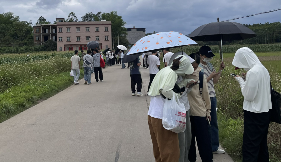 5月21日,师生团队抵达钦州市钦北区大直镇及防城港市防城区防城镇。在老师指导下,同学们现场考察,选择观察点位,分组开展无人机航测作业。学生们通过低空遥感技术,精准获取地表影像数据,并结合实地地物特征对该地的农田及园地作物进行区分标记。