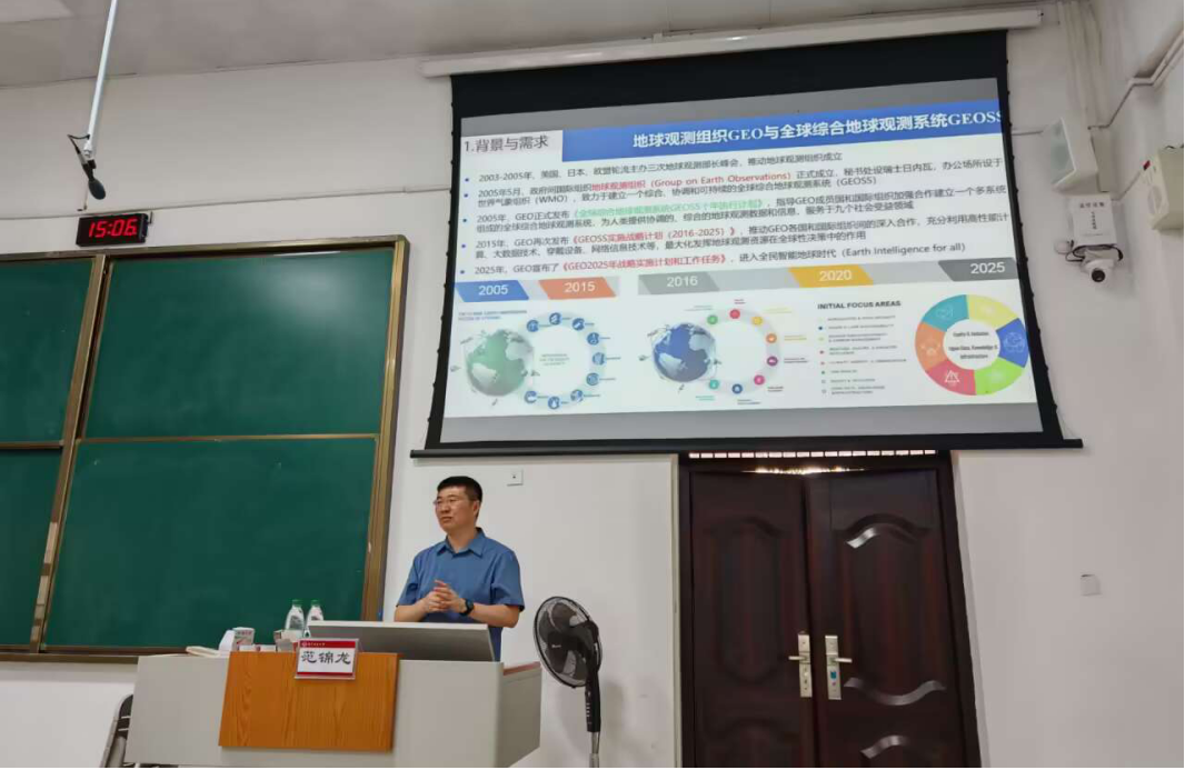 范锦龙教授以“国产卫星全球数据处理技术与应用”为主题,从背景与需求到地球观测卫星发展概况,从关键技术研发与突破到全球数据应用,层层深入地为到场的师生剖析了主题。