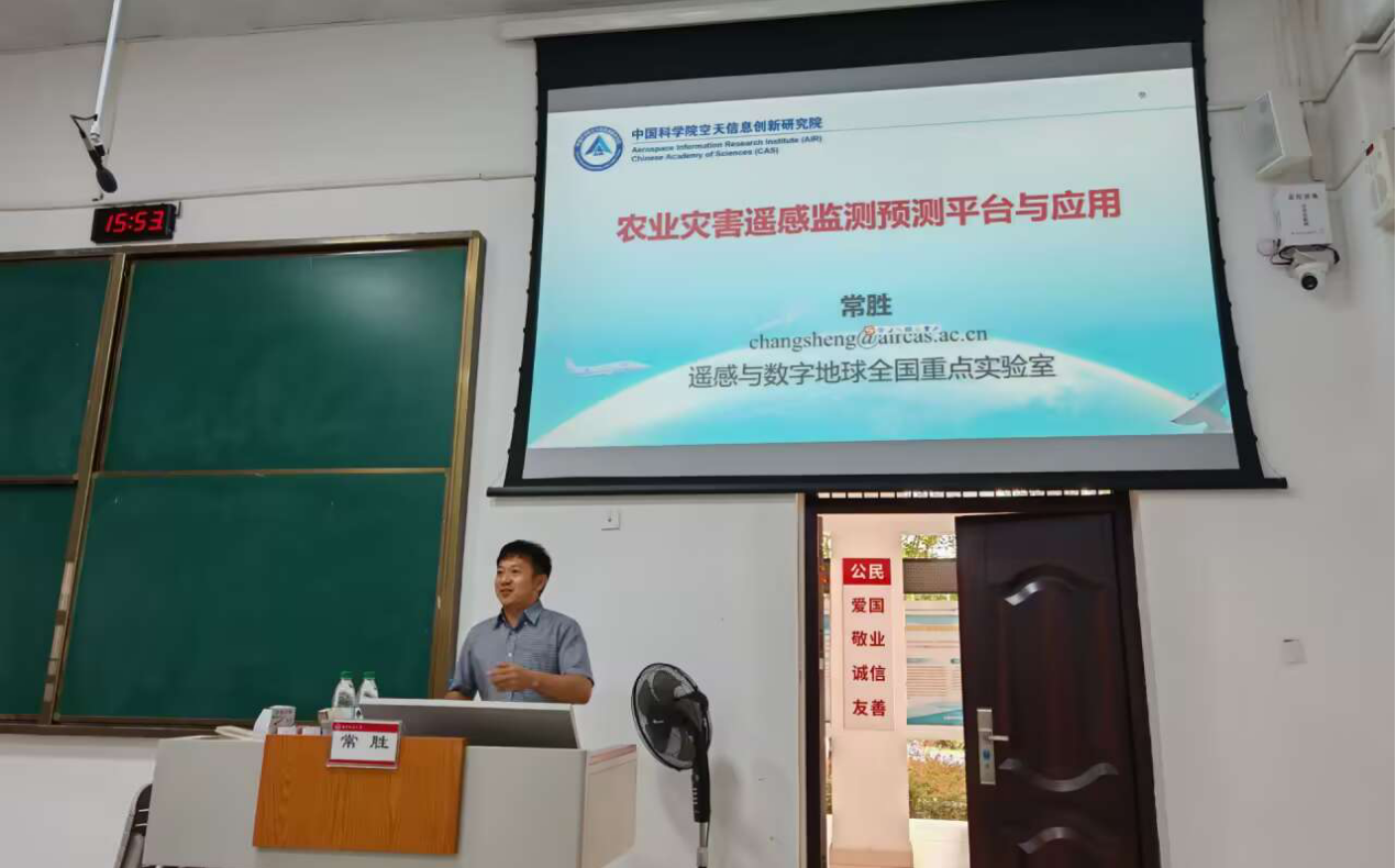 常胜副研究员围绕“农业灾害遥感监测预测平台与应用”的主题,结合实例为师生展示了遥感监测预测平台在预防农业灾害上的有效应用以及强大作用。