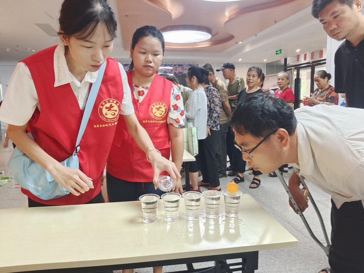 (志愿者为残障人士开展趣味活动)
