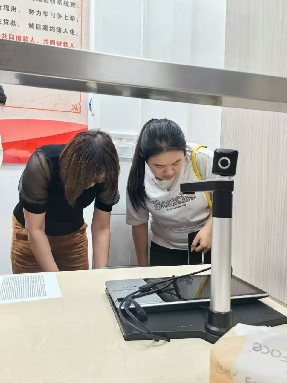 (志愿者在进行助学贷款合同签订工作)
