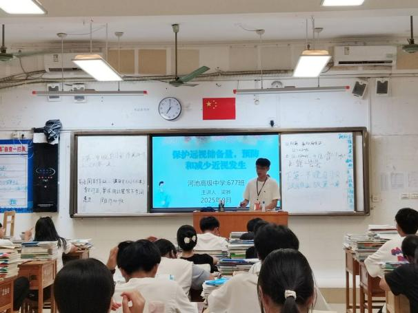 实习老师梁骅则聚焦学生普遍关注的近视问题,开展了“科学用眼,预防近视” 主题班会。他通过专业讲解与实用建议,让学生深入了解近视防控的重要性,引导大家在日常学习中养成健康用眼的好习惯。