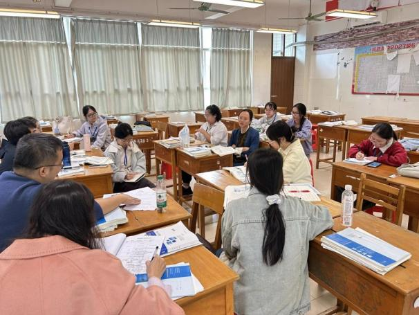 实习生依次完成教学展示后,韦晨老师、全体实习生以及几位带教老师随即开展课后研讨,共同复盘本次授课的整体情况,从教学节奏、内容呈现、师生互动及细节处理等多方面进行交流,为实习生梳理教学亮点、指出待改进方向,为后续教学能力提升提供了针对性指导。