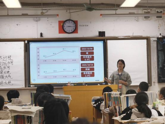 实习老师黄韵宁表示:课堂节奏的把握仍有提升空间,由于在课前补充讲解了上节课遗留的探究题,本课时后半段内容推进偏快,未能充分顾及学生的接受程度,且原计划延伸讲解的“全球气候变暖与大气保温作用的关系”因时间不足未能展开。在课堂组织方面,对学生记笔记的时间安排不够合理,未能充分预判学情及利用教辅资料,一定程度上影响了课堂效率。