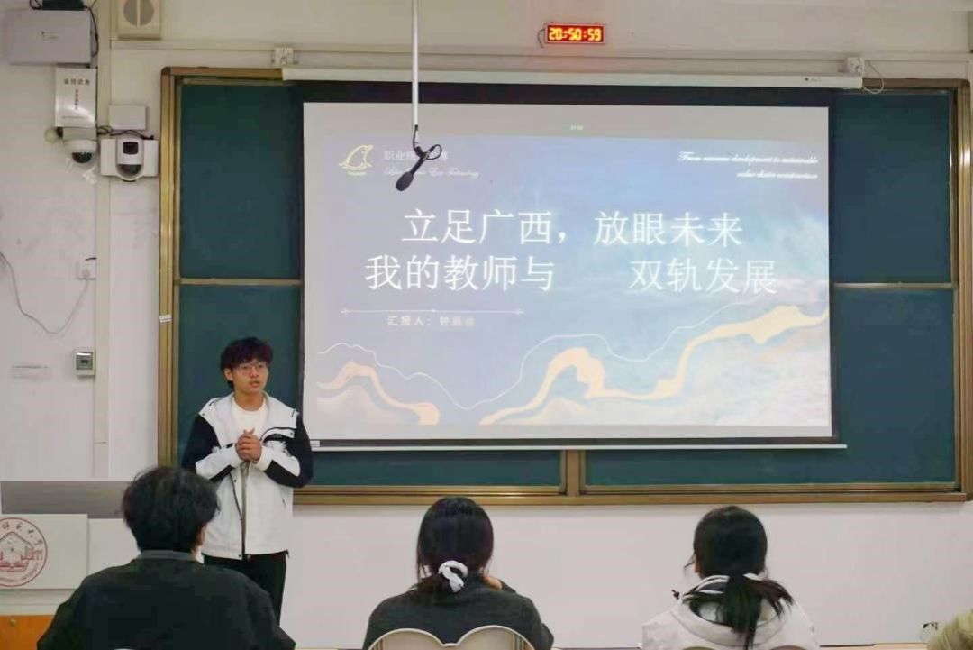 11月20日,6686体育于武鸣校区一号教学楼119教室顺利举行大学生职业生涯规划大赛复赛。此次复赛邀请学院辅导员覃辰柳、农宇鹏、李洁柳以及大学生科技创新协会主要负责人陈勃、活动部负责人梁倬铭担任评委。