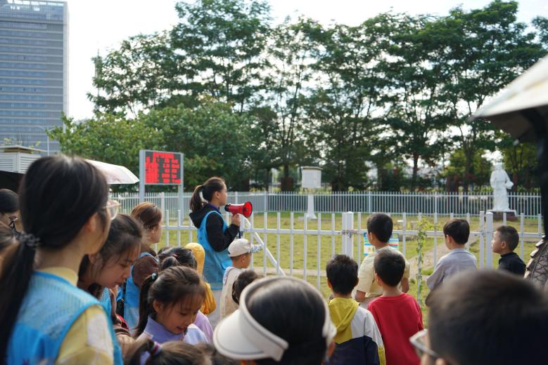 在霞客园,志愿者讲述了明代地理学家徐霞客在广西的考察历程,让孩子们在游览中体验地理探索的艰辛与乐趣,悄然播下求知与探险的种子。中场休息期间,活动特别增设月相知识科普环节,通过图文展示与趣味问答,孩子们在轻松氛围中了解了月相变化的规律,踊跃举手、积极应答,展现出对天文现象的浓厚兴趣。