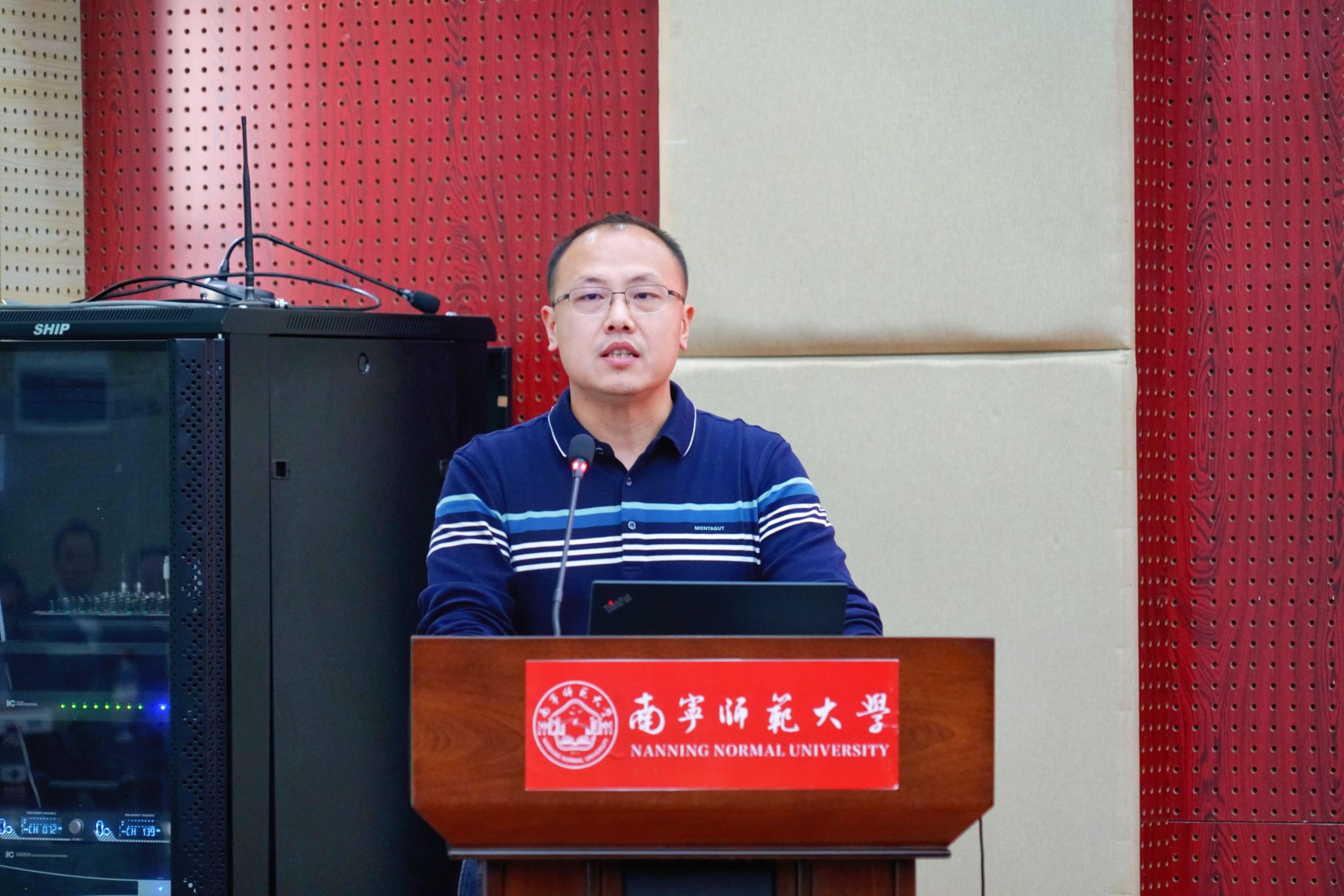广西自然资源信息中心副主任朱剑作“自然资源信息化建设”专题发言,围绕科技成果、共建合作、人才培养、社会服务等方面,介绍了近年来广西自然资源信息化建设与共建自然资源数字产业学院的情况。他希望未来能继续能与学校、行业深入合作交流共同建设开放的数据平台,为自然资源数字产业的产学研合作提供坚实的研究基础。