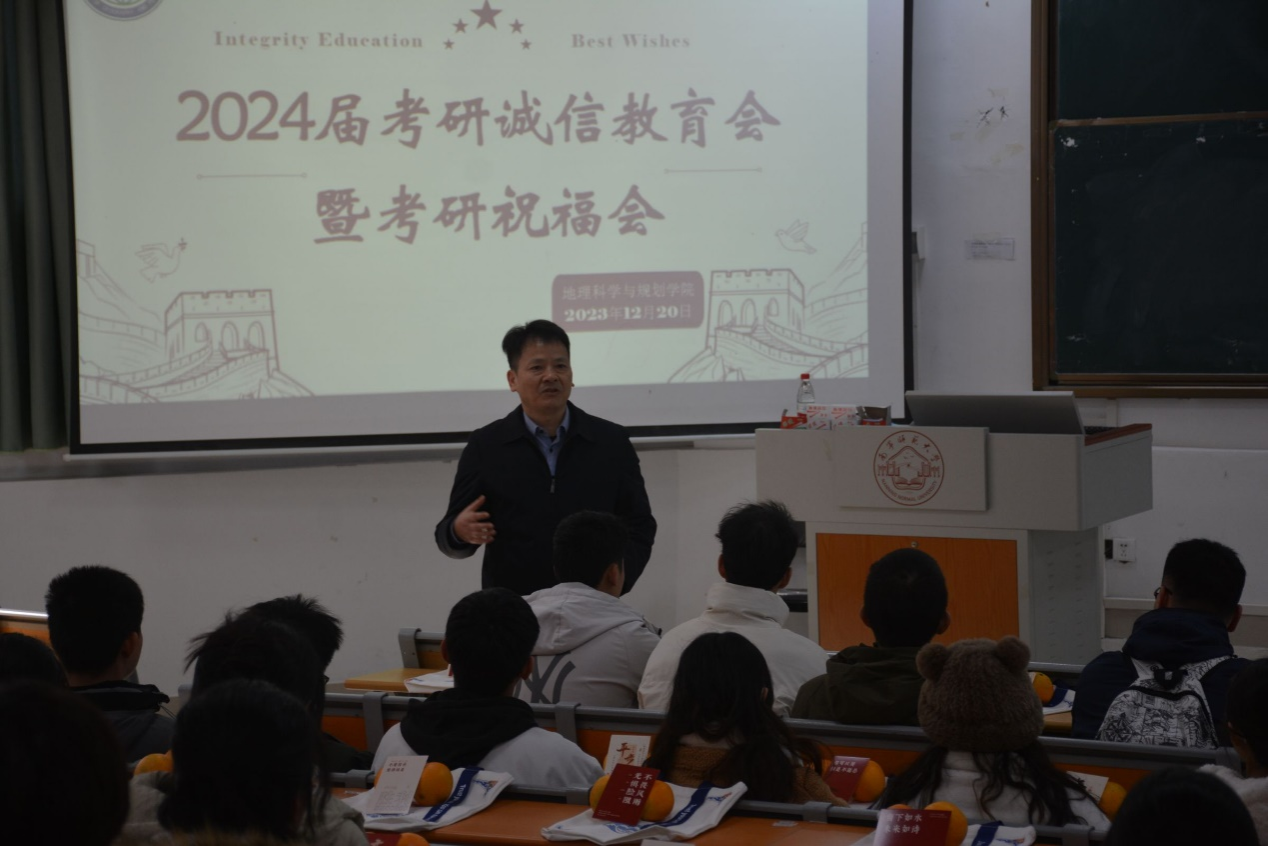 12月20日,6686体育召开2024届考研诚信教育会暨考研祝福会,旨在加强学院考研学子的诚信意识,为即将参加2024年全国硕士研究生统一招生考试的考生鼓舞士气,缓解备考压力,传递学院温暖。院长卢远、党委副书记李海琛和团委书记蔡琪出席此次会议。