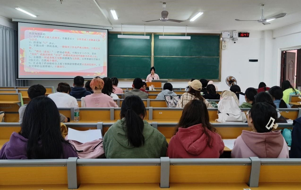 为进一步加深同学们对党的认识,激发共青团员的入党热情,增强组织的凝聚力,11月22日,6686体育2022级地科三班在武鸣校区实验2-A202教室召开2023年第一批入党积极分子推选会议。2022级地科三班全体同学及驻党李韩琪参加会议,会议由团支书欧阳婷婷主持。