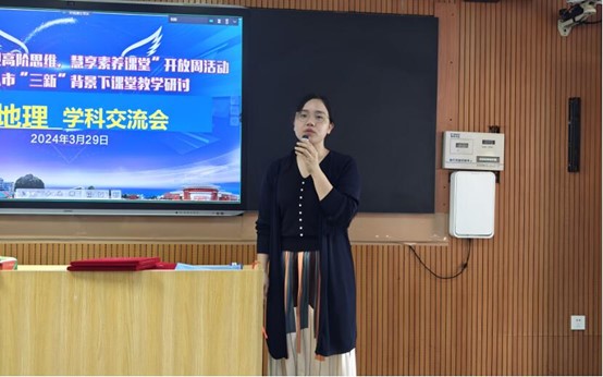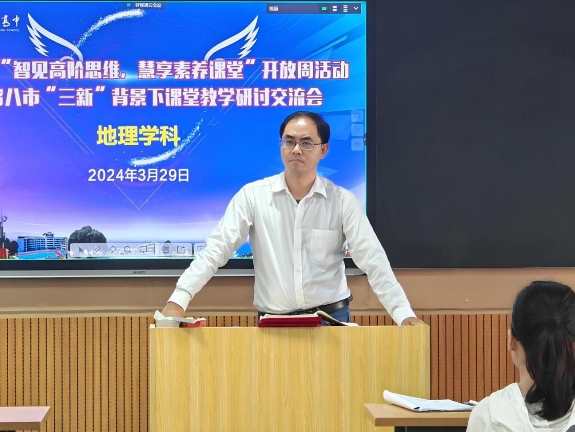 听课结束后,在武鸣高中地理教研组组长黄艳辉老师的组织下,2021级全体同学继续参加了以高阶思维,慧享素养——“三新”背景下指向学科核心素养的“五有五化”课堂教学为主题的评课研讨活动。首先由三位上课老师以说课的方式,分析了自身教学设计以及教学过程中存在的一些得失,接着武鸣高中高二地理备课组徐冰琳老师做了《高阶思维慧享素养-“三新”背景下指向地理学科核心素养的“五有五化”课堂教学》的微专题报告。