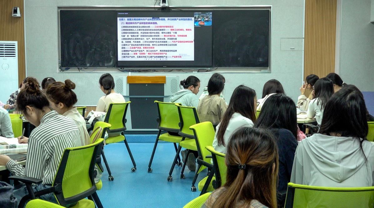 上午8时,在武鸣高中凌飞楼录播室及南宁师范大学地源楼B211教室,2021级地理科学专业全体地理学子一起观摩了莫钟慧、朱筱筠、周君三位老师带来的三节《产业转型地区的结构优化——以美国休斯顿为例》同课异构课程。作为未来的地理教师,2021级地理学子在课堂上认真听课、及时记录,展现出积极好学的精神风貌。通过观摩这三节课,同学们清楚地发现三位教师对同一教材内容不同的处理方式,并认识到不同的教学策略所产生的不同教学效果。通过本次教育见习观摩活动,使同学们得到了许多教学启示,开阔了同学们的教学思路,丰富了教育见习经验,并对未来如何成为一名优秀的地理教师有了更多思考。