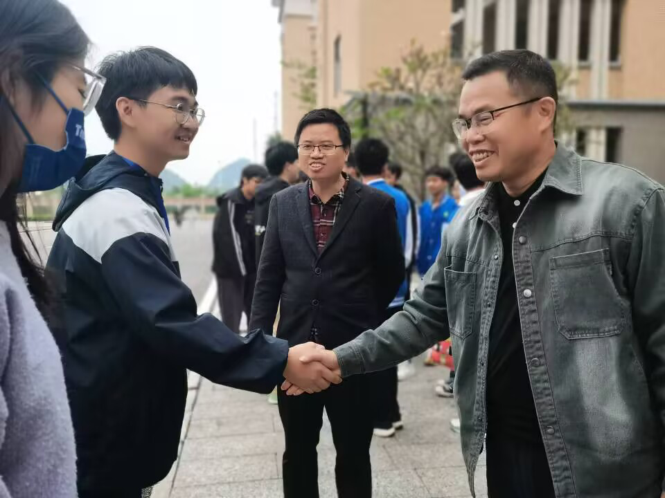 (实习小组组长莫家凯与贵高高一年级领导握手)
