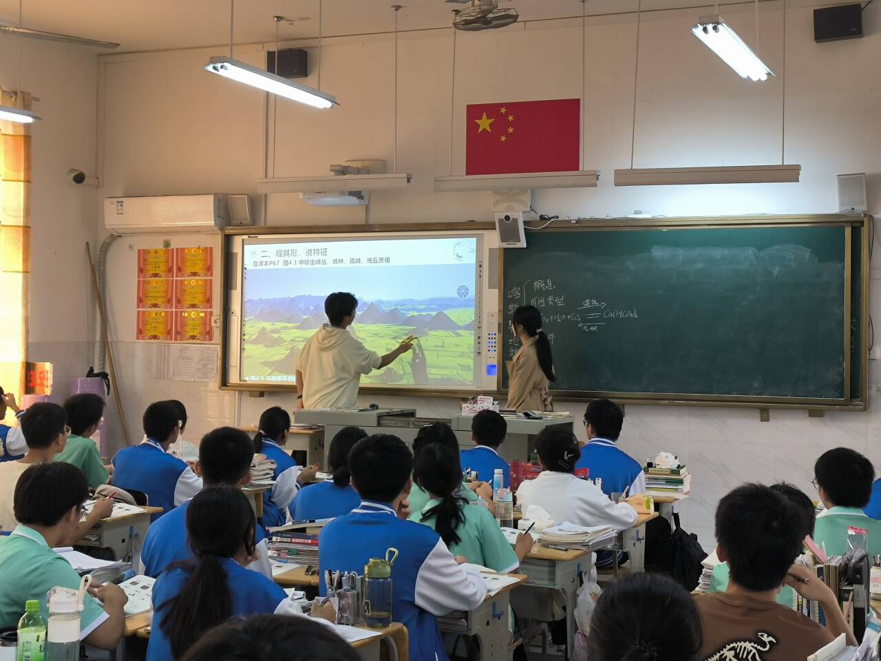 为检验同学们为期两个月实习的学习成果,贵港市高级中学实习小组于11月23日进行公开课汇报展示,公开课汇报人一是莫家凯,公开课内容为人教版《海水的盐度》;二是王玉华,公开课内容为人教版《喀斯特地貌》。
