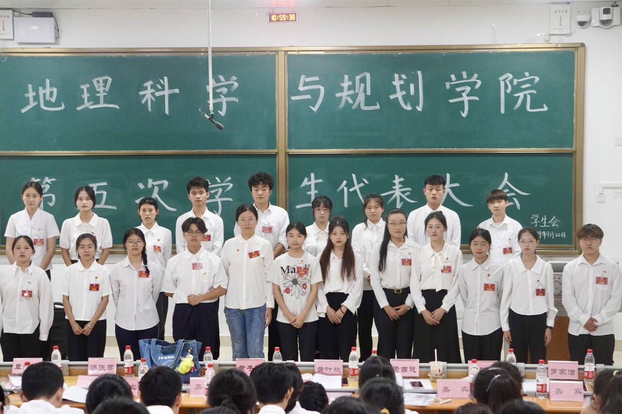新一届当选学院学生会主席团成员黎丘雨同志宣读大会倡议书,号召全体学生干部要始终深入学习贯彻习近平新时代中国特色社会主义思想,在党的领导、共青团的指导下,秉持“全心全意为同学服务”的宗旨,践行“德才并育,知行合一”的校训和“明德至善 格物致知”的院训,把青春奋斗融入时代洪流,在推进强国建设、民族复兴伟业中展现新时代青年的担当。