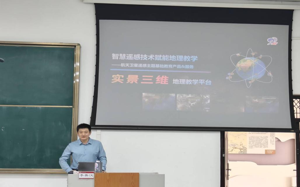李英汉以“智慧遥感技术赋能地理教学”为主题,讲解了卫星遥感技术和地理信息系统在当前地理教育中的应用。他指出,三维技术的引入地理教学不仅有助于直观清晰地理解复杂地形等地理知识,更能培养和提高应用者的理解能力和空间思维感知能力。同时,他也结合AI技术新特征阐述了对地理教学和教育理念的革新变化,鼓励同学们要适应时代发展趋势,主动将新技术融入到实际学习当中,进一步提升深度学习和终身学习的能力。