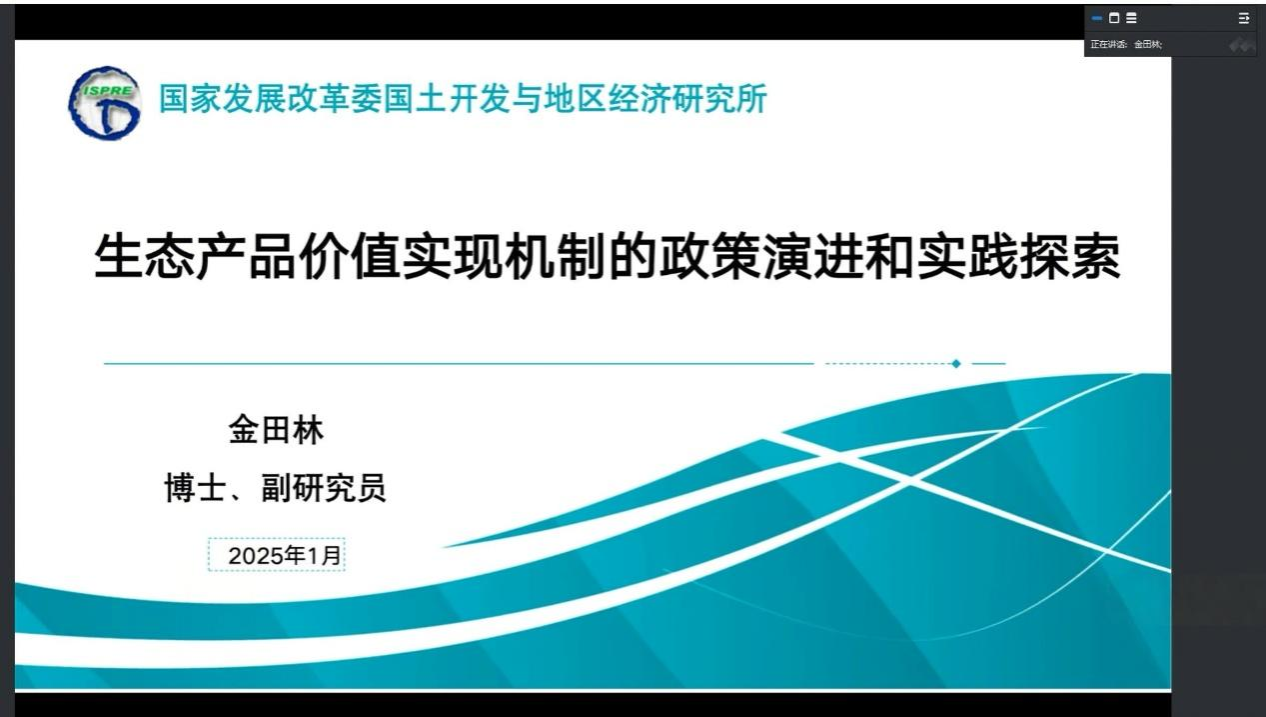 2025年1月8日,受6686体育邀请,国家发展改革委国土开发与地区经济研究所副研究员金田林博士、中咨集团生态技术研究所部门副主任、高级工程师朱梦洵博士为我院师生做了题为“生态产品价值实现机制的政策演进和实践探索”、“生态产品总值核算和特定地域单元价值核算的区别与联系”的学术报告。此次报告会由我院副院长赵银军教授主持。