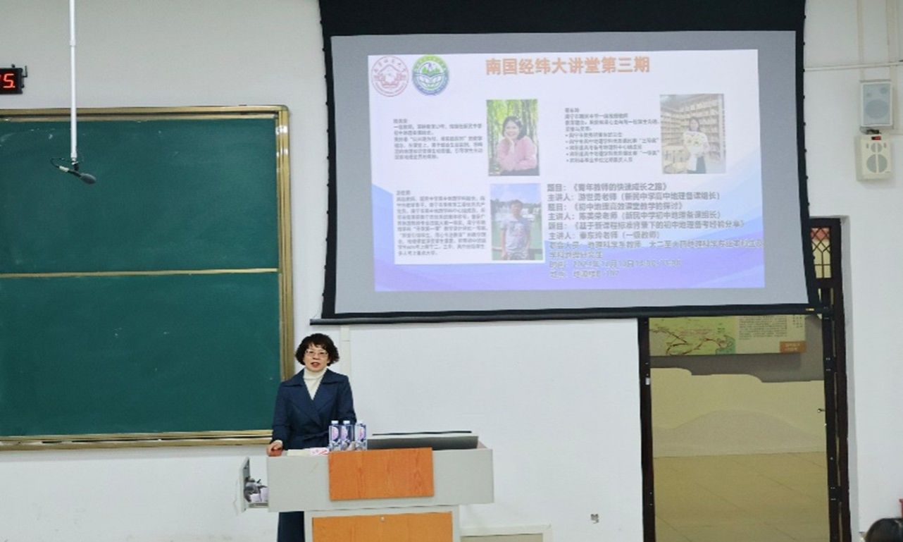 2024年12月10日,6686体育邀请了南宁市新民中学初中地理备课组长陈美荣、一级教师秦东玲、高中地理备课组长游世勇老师在武鸣校区地源楼B-107教室开展了“初中地理高效课堂教学的探究”、“基于新课程标准背景下的初中地理备考经验分享”与“青年教师的快速成长之路”的报告讲座。此次报告会由地理科学系主任宋立全和副主任韦晨策划、宋立全主持,地理科学系教师、大二至大四地理科学专业本科生及学科地理硕士研究生参会。