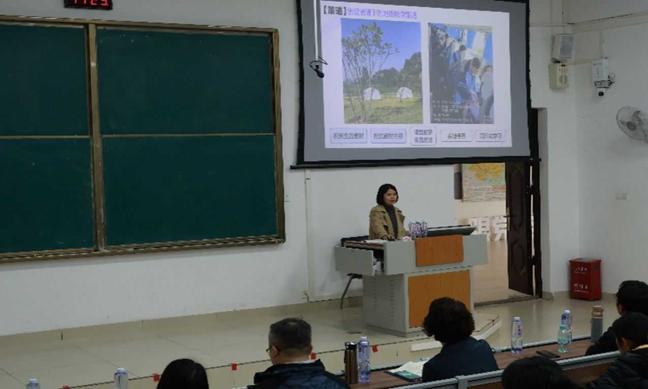 陈美荣老师以“初中地理高效课堂教学的探究”为主题,分享了初中地理在“三新”背景下地理教学存在的挑战,并结合实际教学情景提出了创设情景下的地理教学策略,让地理科学专业师范生充分了解初中地理课标的变化,并为其开展生动、高效的初中地理课堂提供理论和实践指导。