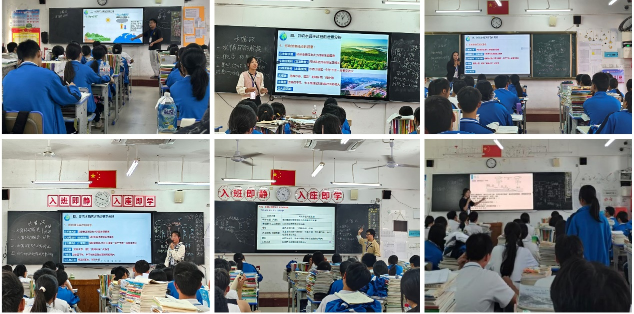 2024年11月5日、11月21日,带队老师莫海明和刘庆前后两次前往学校探望实习队伍,并对实习教师近期的教学成果进行检验和点评。评课采用实习生自评、实习小组互评、指导老师评价、带队老师评价等多种评价方式全面展开评价。两次评课带队老师及指导老师都对实习生的成长给予了肯定,并针对不同实习生的课堂给出了实质性的意见和建议。如莫海明老师指出对课堂思政以及乡土地理开发不足,讲到海水运动时,指出潮汐的概念在高中地理课本与大学所学的地球概论中的不同,将大学与高中知识联系起来,指出了高中课本知识的不严谨性,建议实习教师在教学过程中进行知识的补充和说明;刘庆老师指出可以从教师教学要素组合、教学弹性设计、课堂互动有效性、学生反馈评价等不同的角度进行教学优化;指导老师们指出可以从课堂承转、教材内容挖掘与拓展、学生兴趣引导等方面提高教学质量。