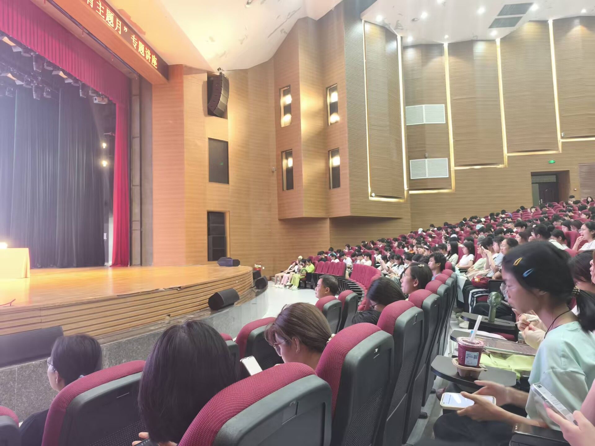 (同学们按时参加讲座)