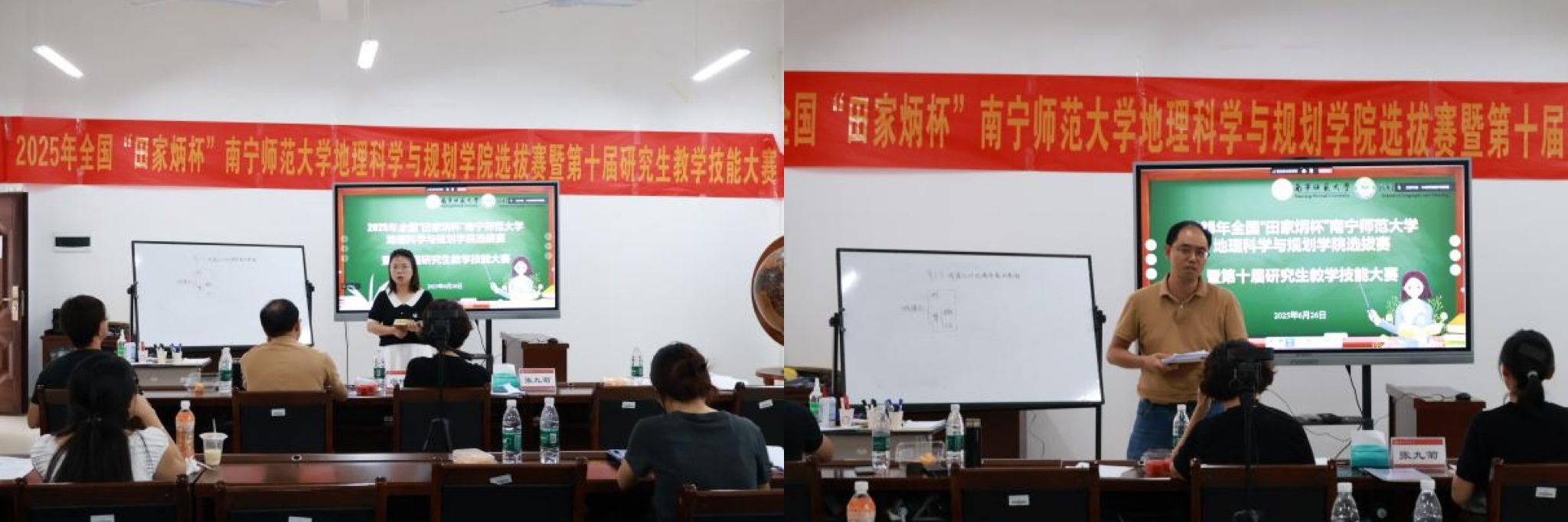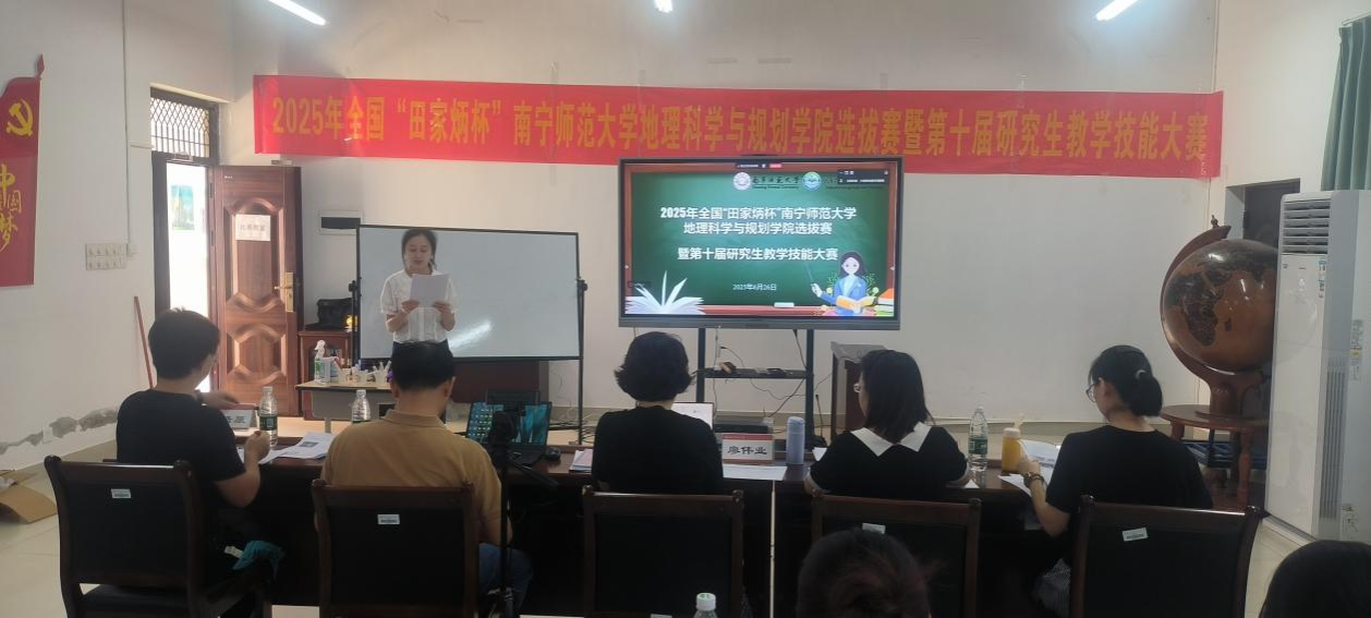 6月26日,6686体育在地源楼C401教室举办2025年“田家炳杯”全日制教育硕士专业学位研究生学科教学(地理)专业教学技能大赛预赛暨南宁师范大学6686体育第十届研究生教学技能大赛。此次大赛邀请6686体育张胜前、廖伟业、梁浩原、张九菊和南宁一中王欣五位地理教学领域资深教师担任评委。