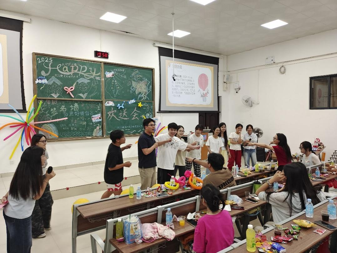 活动伊始,2022级党员同志们带来了热情洋溢的开场舞蹈,为茶话会拉开了精彩序幕。随后,在主持人的引导下,党员同志们共同参与了“古诗猜猜猜”“背对背运球”“谁是卧底”等趣味游戏,现场气氛热烈,充满欢声笑语。游戏环节结束后,全体同志共同观看了2022级、2023级同志录制的祝福视频,回忆一年来相处的美好时光。在随后的毕业生党员同志发言环节,毕业生同志们表达了对支部的美好祝愿以及对其他同志们的殷切期盼。发言结束后,全体同志合唱歌曲《再见》,表达对彼此的不舍与留恋。最后,支部全体成员进行留念合影,将最开心的一幕定格在相片中。