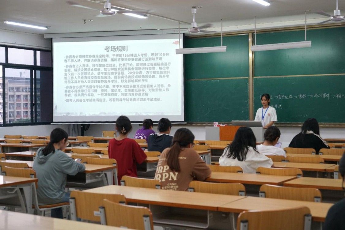 本次比赛采用线上答题形式,题目设计紧密结合非遗文化的核心元素,如传统技艺、民俗活动等,涵盖填空题、选择题、判断题和排序题四大题型,多方面考察学生对非遗知识的掌握程度。赛前,工作人员早早抵达场地,有条不紊地开展考场布置工作:调试设备、摆放桌椅、张贴引导标识,确保每个细节都精准到位。布置完毕后,他们在签到处迎接陆续到场的参赛选手,引导大家核对个人信息、有序签到。参赛学生有序入场后,工作人员宣读考试注意事项,全程协助选手加入易班优课平台,同步开展考场监督工作。比赛期间,选手们聚精会神投入作答,展现出对赛事的高度专注与认真态度。