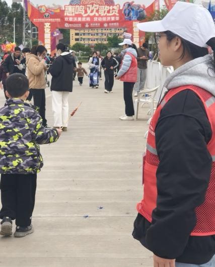 在非遗文化和美食展区,志愿者协助摊主布置展位,为游客讲解传统文化;在斗牛斗马竞技场,他们引导观众有序观赛;在停车场和外场,他们耐心疏导交通,确保活动安全有序进行。整个活动过程中,志愿者们始终以饱满的热情引导游客,积极协助活动流程,有力维护现场秩序,展现了我院学子的饱满热情和实践风采。