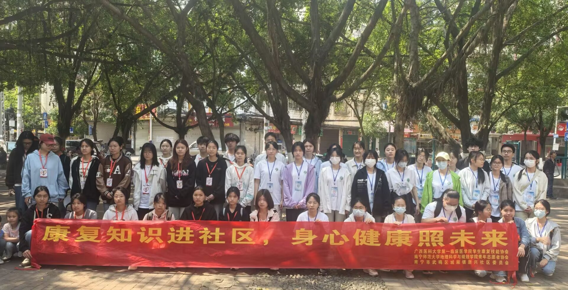 为深入贯彻落实全国两会精神和党的教育方针,同时走进基层,服务社会,让社区居民了解健康生活。2025年3月23日,南宁师范大学6686体育青年志愿者协会协同广西医科大学第一临床医学院学生康复技能协会,前往南宁市武鸣区城厢镇新兴社区开展以“康复知识进社区,身心健康照未来”为主题的科普活动。