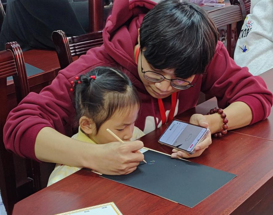 活动伊始,在志愿者生动有趣的讲解和小朋友的互动问答中,小朋友了解到极地的气候和生物以及极地地区特有的的极光现象。通过地理趣味小课堂,不仅拓展了小朋友的知识面,还引出当前全球气候变暖导致的冰川融化、海平面上升等问题,这使得他们认识到保护环境的重要性。随后,志愿者组织小朋友观看纪录片《北极最后的避难所》,小朋友从中了解到北极目前的生态状况,并对全球气候变暖问题有初步的认识。紧接着,志愿者引导小朋友进行刮画与折纸,小朋友运用他们丰富的想象力与创造力还原出动物们的形象,了解到自己喜欢的动物的特征,不仅他们的耐心和专注力得到了提高,更培养了他们的动手能力。活动最后,小朋友举着自己的手工作品与志愿者合影留念。