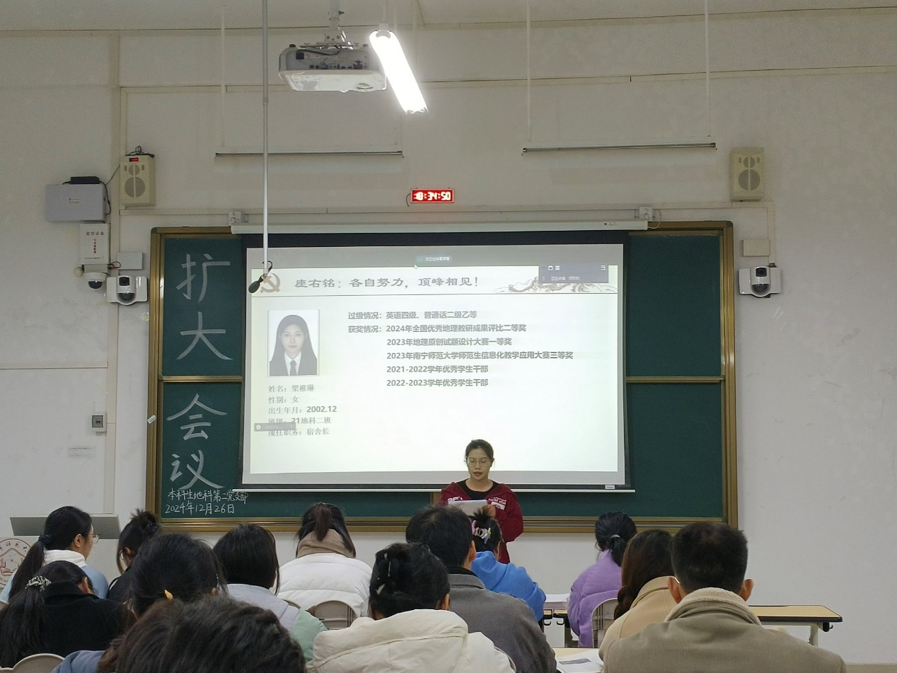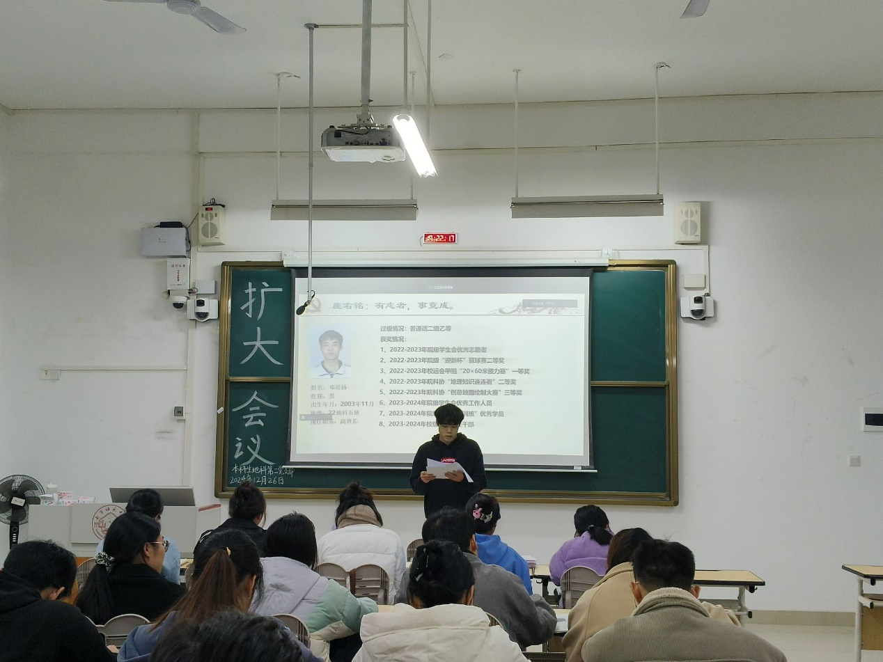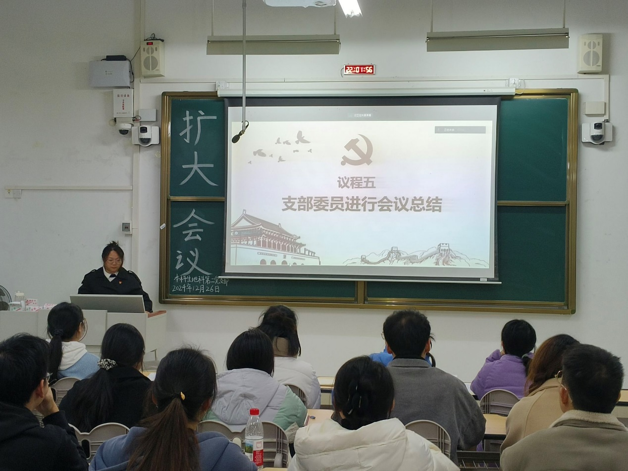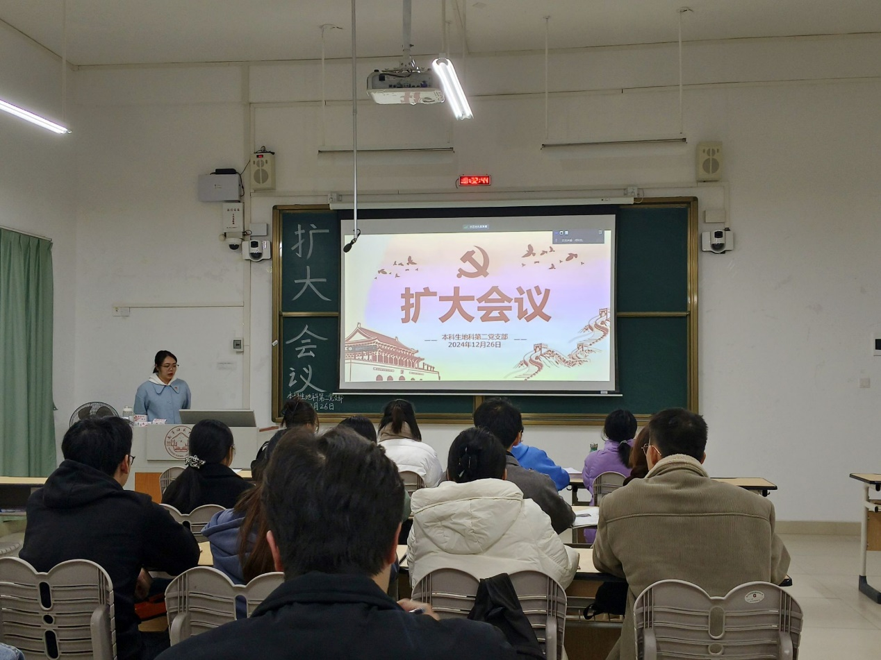 2024年12月26日,6686体育本科生地科第二党支部在武鸣校区1号教学楼120教室召开2024下半年扩大会议。本次会议由支部组织委员黄小同志主持,支部全体成员参会。