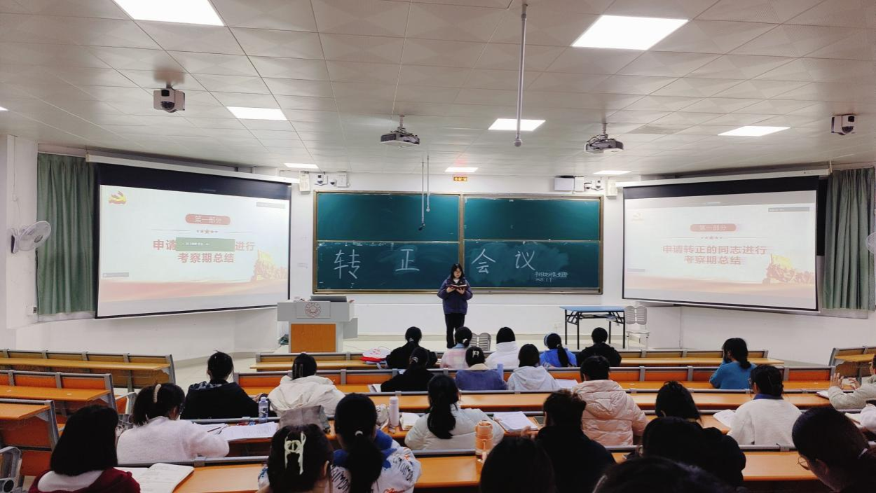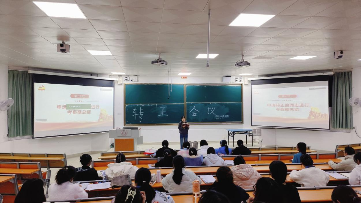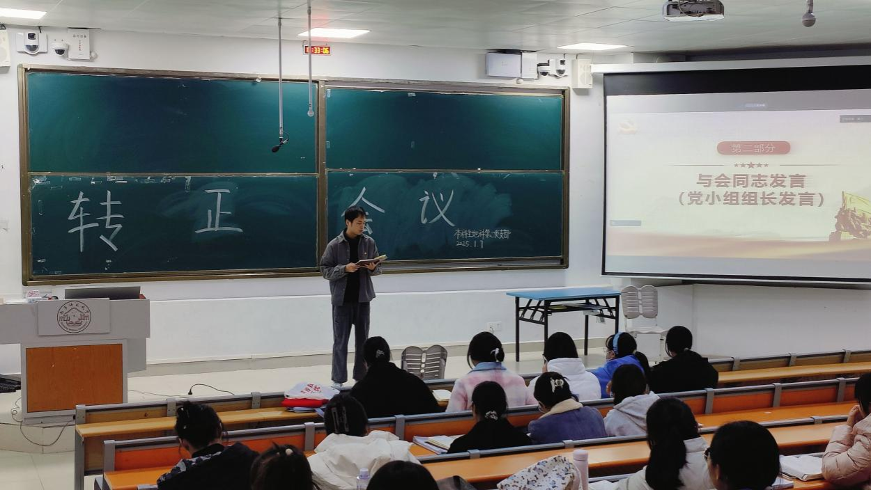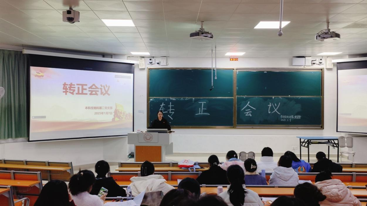 2025年1月7日,6686体育本科生地科第二党支部在南宁师范大学武鸣校区1号教学楼114教室召开预备党员转正会议。会议由支部组织委员黄小同志主持,支部全体党员参会。