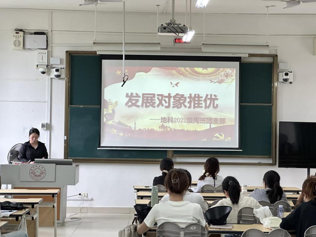 5月7日,6686体育2022级地科陶班在武鸣校区一号教学楼119教室召开发展对象推优大会,会议由团支书欧阳婷婷主持,班级全体成员共同参会。