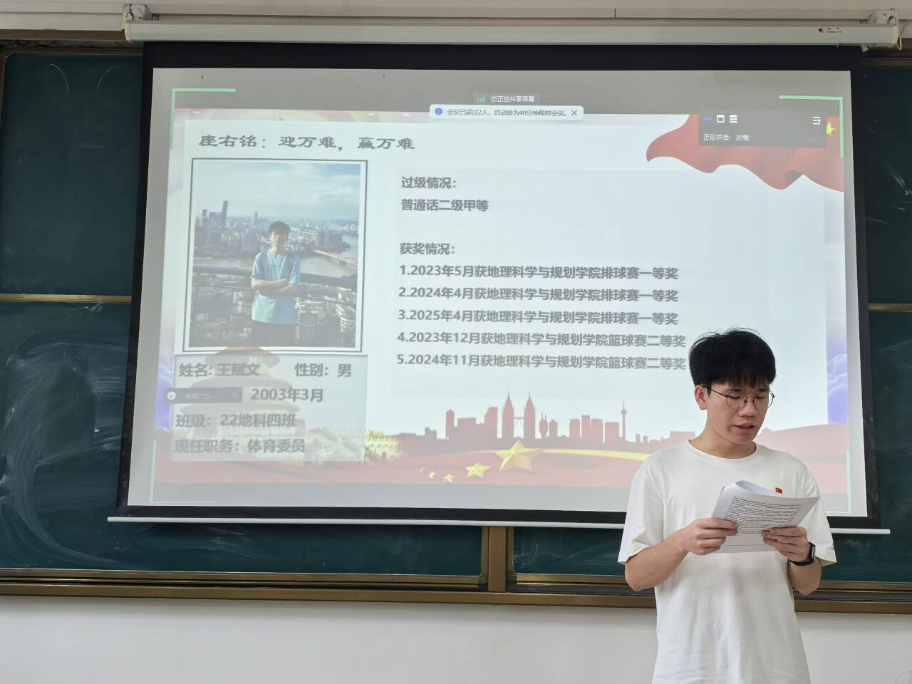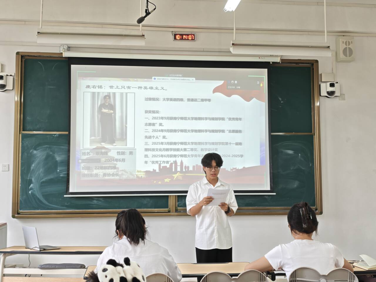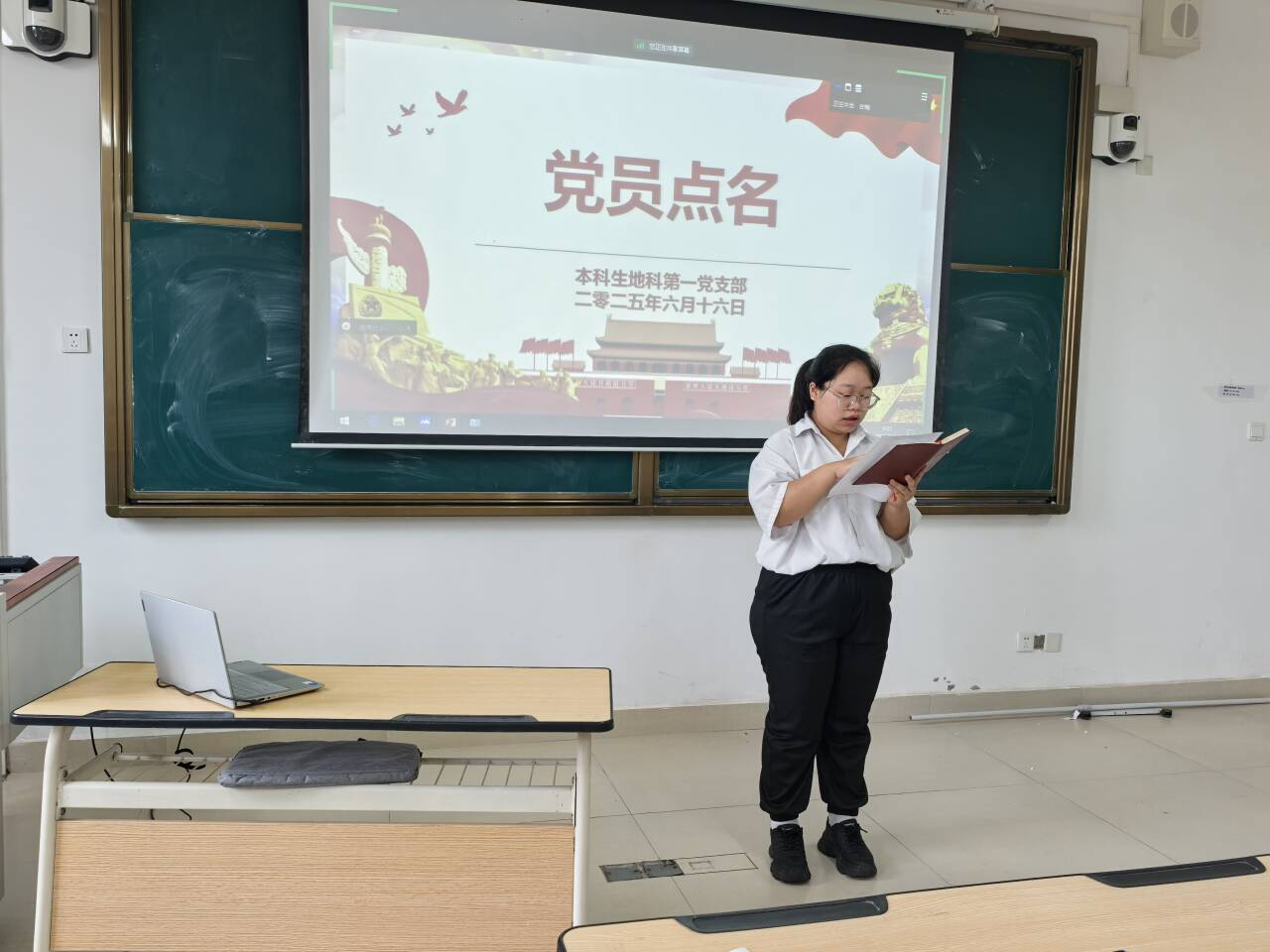 6月16日,6686体育本科生地科第一党支部在武鸣校区2号教学楼216教室召开了2025年上半年扩大会议。会议由支部组织委员胡佳琦主持,支部全体党员及15名发展对象共同参与。