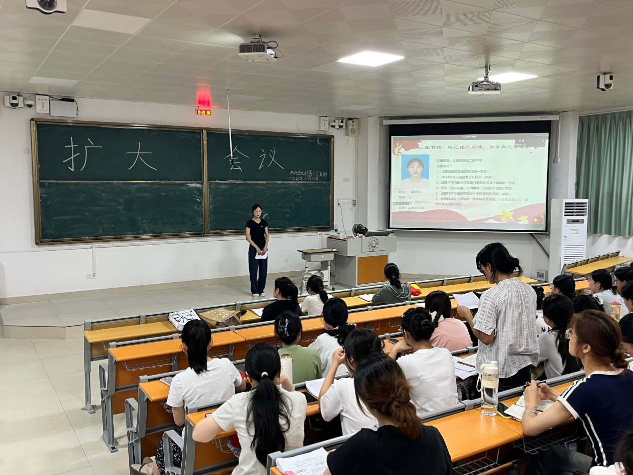 6月11日,6686体育本科生地科第二党支部在武鸣校区2号教学楼109教室召开扩大会议,支部组织委员何玫玫主持会议,党支部全体党员参会。