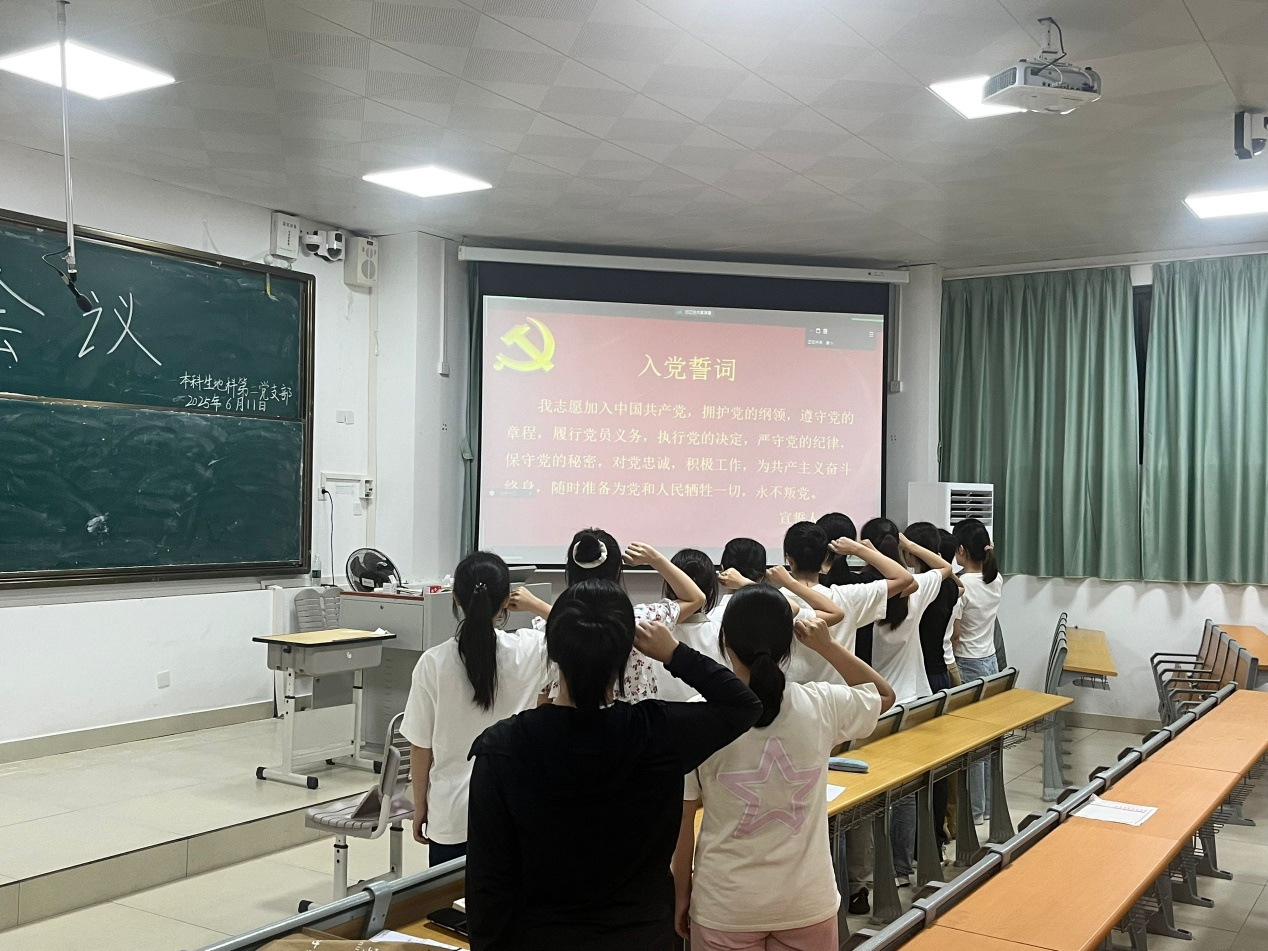 本次扩大会议就是否同意接收肖柯蕾等10位发展对象成为中共预备党员的问题进行了讨论。会议伊始,发展对象依次宣读入党志愿书,阐述入党决心、理论学习情况;在入党介绍人宣读意见后,正式党员进行无记名投票表决,最终同意接收肖柯蕾等10位发展对象为中共预备党员。随后,在何玫玫的带领下,新进党员进行了入党宣誓。最后,纪检委员覃韦梅对新进党员表示祝贺并强调了党支部纪律,希望新进党员能够遵守党支部内的各项规章制度。