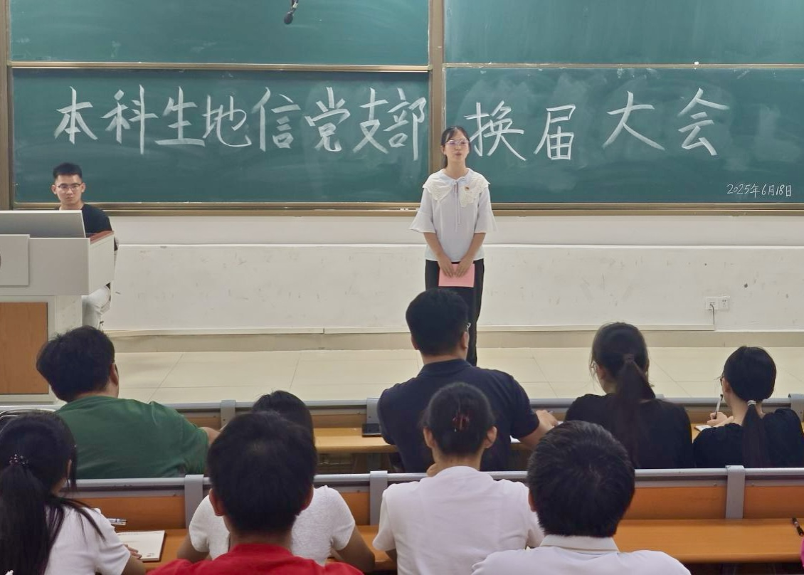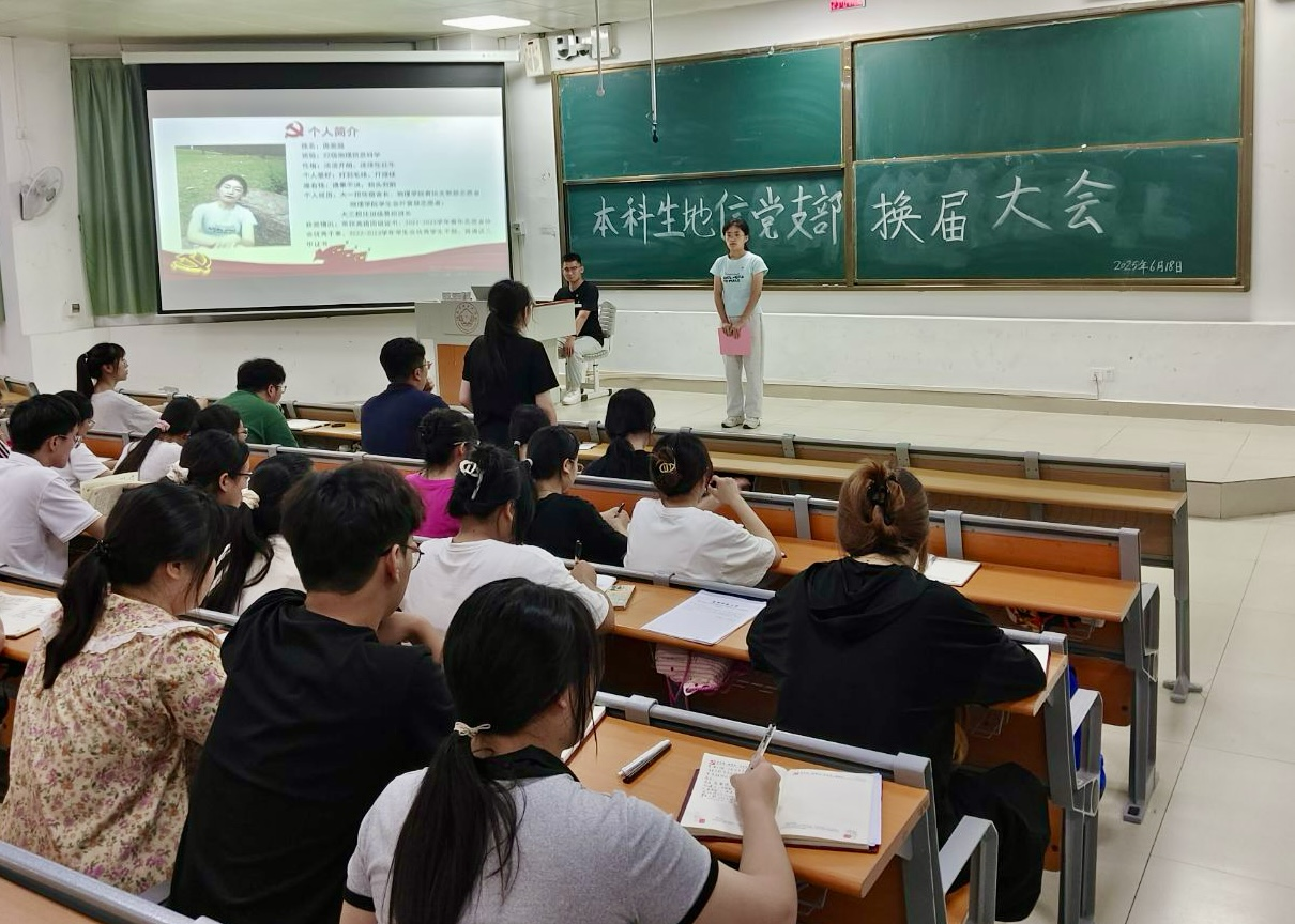 6月18日,6686体育本科生地信党支部在武鸣校区1号教学楼114教室召开支部委员换届大会。本次会议由党支部宣传委员方家鑫同志主持,支部全体党员参会。