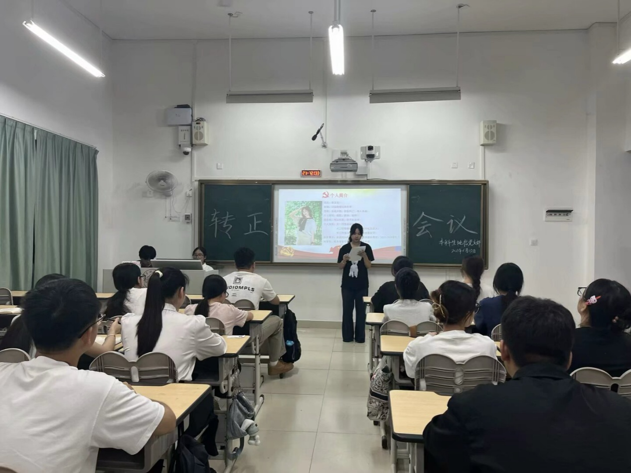 本次会议主要讨论莫映莹等11位中共预备党员的转正事宜。会议伊始,转正申请人依次宣读转正申请书,汇报自身在预备考察期间各方面的情况。随后,韦宗榜同志宣读民意调查结果,其他与会同志结合各转正申请人的发言进行提问,或就其考察期间的综合表现进行总结与评价。提问评价环节结束后,转正申请人从思想、实践、规划三方面进行自我总结,并表达出对如期转为正式党员的坚定意愿。最后,与会正式党员进行无记名投票表决。