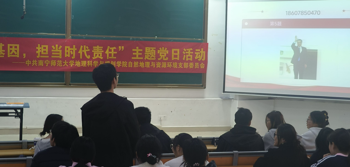 11月30日,6686体育本科生自然党支部于武鸣校区一号教学楼114教室开展“传承红色基因,担当时代责任”主题党日活动。此次活动由党员郭香凝主持,党支部全体成员、学院各年级积极分子代表及学生代表共同参与。