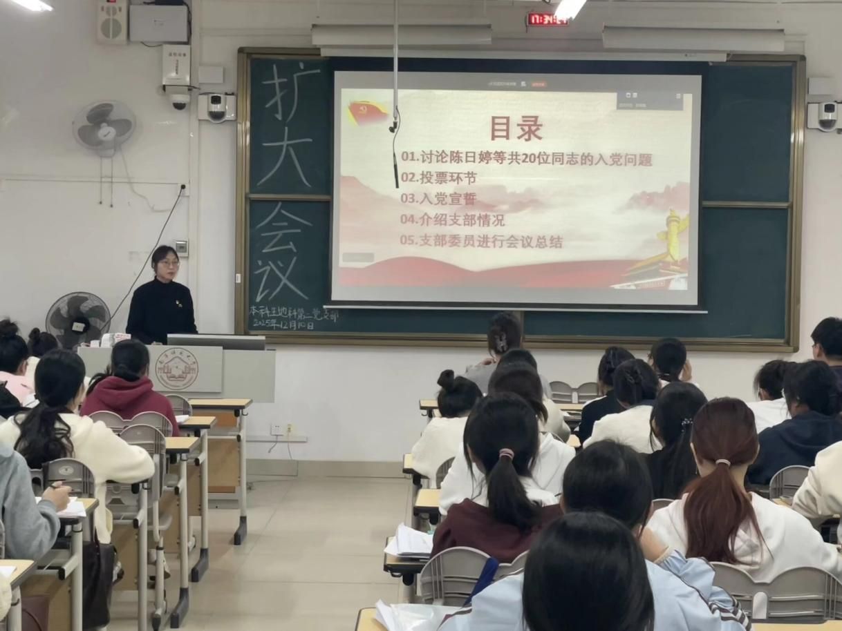 12月10日,6686体育本科生地科第二党支部在武鸣校区1号教学楼220教室顺利召开2025下半年扩大会议。会议由党员谭秋莹主持,党支部全体成员参加。