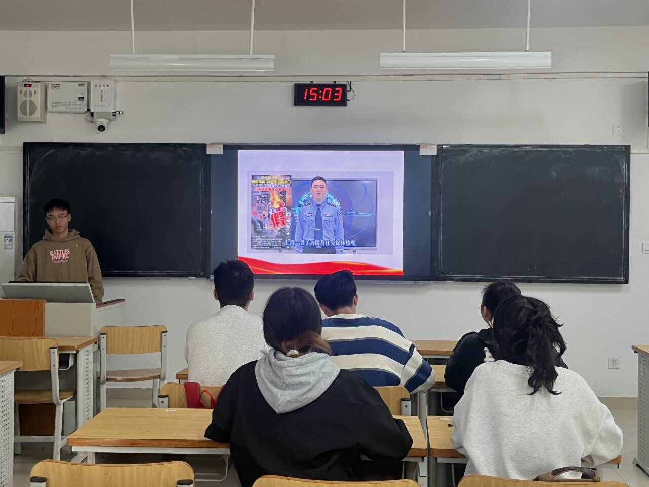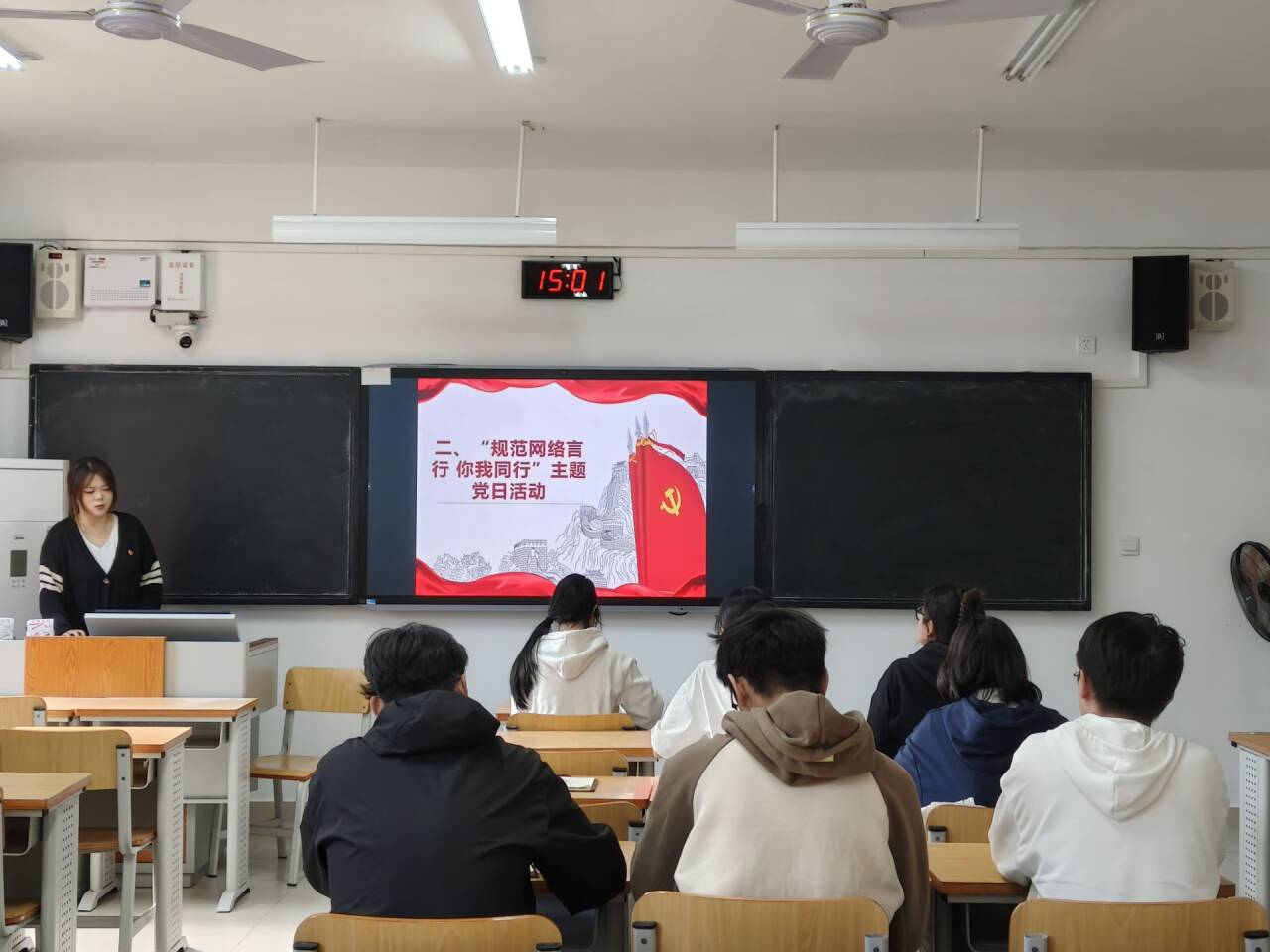 此次活动分两部分进行:一方面,党支部各党小组开展集中学习,通过观看网络言行警示教育视频,以案明纪,深刻警醒全体党员知敬畏、明底线,将规范网络言行内化于心、外化于行;另一方面,党员与团支书深入班级开展宣讲活动,结合《中华人民共和国网络安全法》解读网络言行的法律边界,并通过案例剖析“越界”言行的法律责任,揭示网络造谣、传谣、信谣的严重危害,引导广大同学清晰认识网络并非法外之地,务必恪守“不造谣、不信谣、不传谣”的行为准则。