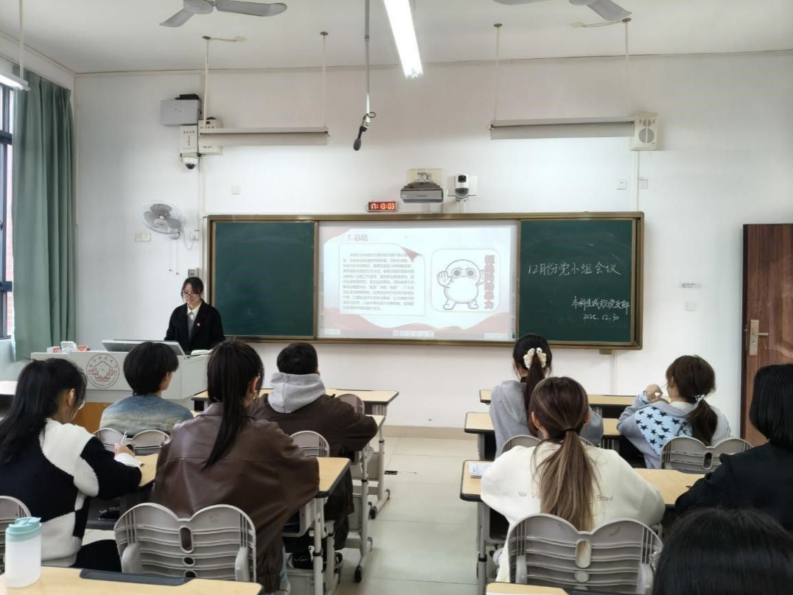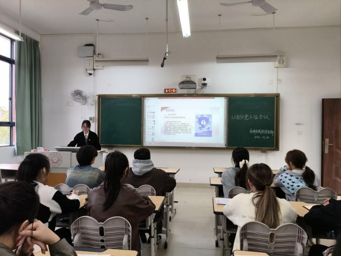 12月30日,6686体育本科生城规党支部在武鸣校区2号教学楼205教室顺利召开十二月份党小组会议。会议由党员韦巧慧主持,党支部全体成员参会学习。
